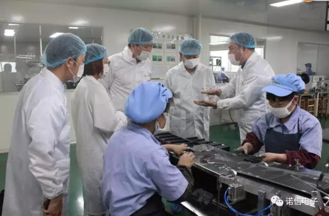 在公司總經(jīng)理冉檸愷、常務副總經(jīng)理高巧娟的陪同帶領下,一行人參觀了公司生產(chǎn)車間、研發(fā)實驗室等。在參觀過程中,冉總、高總詳細的介紹了諾信電子發(fā)展歷程和近年來的生產(chǎn)經(jīng)營情況,并著重介紹了公司未來發(fā)展規(guī)劃。
