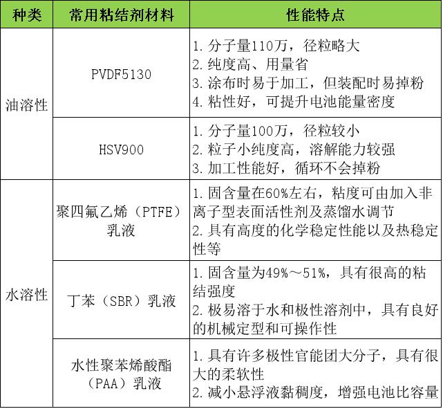③PVDF:最常用的正負極油性粘結(jié)劑