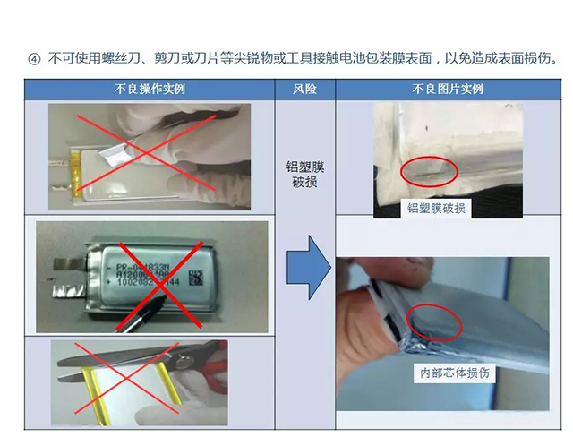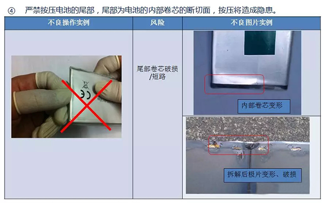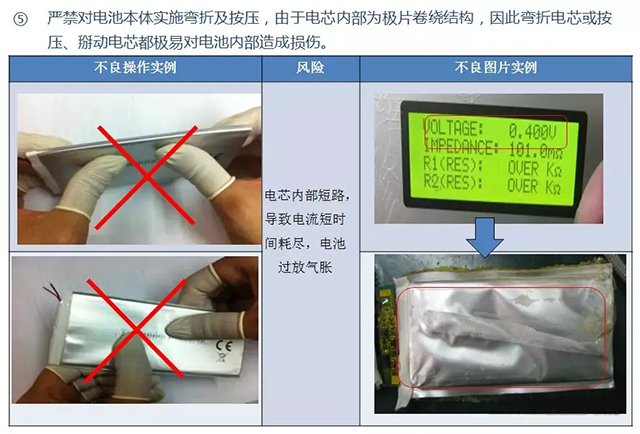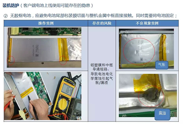 2.電池外包裝比較薄弱,電池較軟,電池受到到外部機(jī)械力、彎折等情況下可能導(dǎo)致電池密封性缺失,導(dǎo)致電池?zé)o法正常使用。
