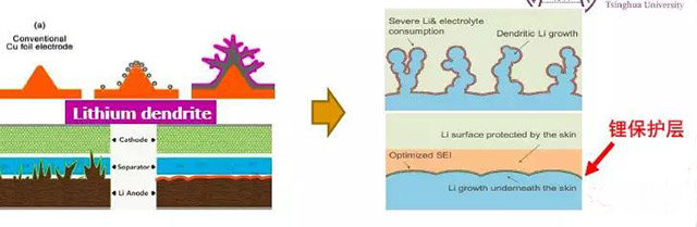 自修復(fù)靜電場理論, 金屬陽離子會吸附在凸起處形成正的電場, 從而排斥同電荷的鋰離子, 減少凸起