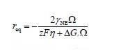 式中,為鋰-電解質(zhì)界面的表面能,Ω為鋰的摩爾體積,z為電荷數(shù),F(xiàn)為法拉第常數(shù),Gf 為摩爾體積轉(zhuǎn)化自由能。鋰枝晶生長,首先必須克服熱力學(xué)臨界半徑,才有足夠的能量形核。其次,單個晶核只有大于動力學(xué)臨界半徑才能夠生長,否則該晶核就會逐步消亡。
