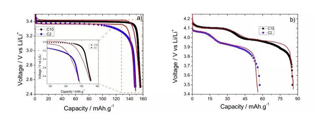 圖2-1模擬結(jié)果與實驗測試值比較一致,驗證了模型的有效性,可用于電池配方設計。