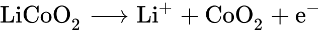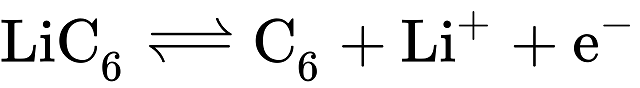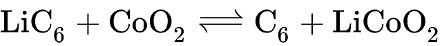 放電過程中,鋰離子從負電極移動(通常是石墨=“C6"),當電池正在充電時,鋰離子和鋰離子會發(fā)生相反的變化,如下所述:通過電解質(zhì)到達電解質(zhì)的正極(負極)(形成鋰化合物),而電子則沿相同方向流過外部電路。電子以較高的凈能態(tài)返回負極,以下方程式說明了化學反應。