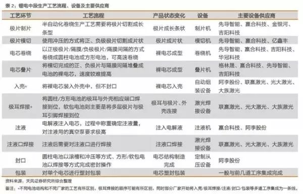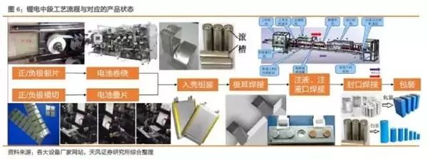 在鋰電池制造過程中,中間工序主要是完成電池成型,主要工藝流程包括制片、極片卷繞、模切、電池芯卷繞成型和疊片成型等。,這是目前國內(nèi)設備制造商激烈競爭的領域,約占鋰電池生產(chǎn)線價值的30%。